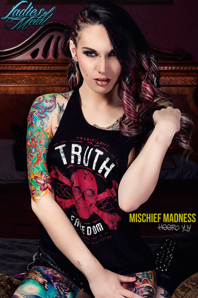 I am a die-hard metal head and I love to spread my love for metal all with the rest of the world! I have my own metal show, "The World of Madness with Mischief Madness" on IPORadio.com. It airs every Friday 2-5PM AZ time. I also like to pose in front of the camera so being a LOM allows me to combine two of my favorite passions! I try to hit up a metal show at least 3 times a month and you can find me conducting interviews backstage with the bands or headbanging in the crowd! I am a heavily modified alternative model, radio personality, and performer! I am easily recognized for my extreme body modifications which include an extensive backpiece and thigh pieces, pointed ears, a plethora of silicone subdermal implants, and a split tongue. Visit my website! Mischiefmadness.com Movies: Oculus, Evil Dead, Deadpool, Labyrinth, The Hobbit and The Lord of the Rings trilogies, The Dark Crystal, 28 days later, Dawn of the Dead, World War Z, American Pie, How High, Half Baked, Little Nicky, Bill & Ted 1 and 2, Alice in Wonderland, 40 Year Old Virgin, Zack & Miri Make a Porno, Jay & Silent Bob Strike Back, Dogma, Airheads Television: The Walking Dead, American Horror Story, Narcos, Buffy The Vampire Slayer, Bates Motel, Salem, Hemlock Grove, Breaking Bad, Brooklyn 99, Southpark, Tosh.O, Dexter, iZombie Food & Drink: Cookies and Milk, water, asparagus, bananas, chicken pot pie, sushi, trail mix, chocolate, and Meatloaf. Obsessions & Addictions: Obsessed with Fantasy, Science, and the Macabre. Addicted to my vape and weed. For more interviews |
