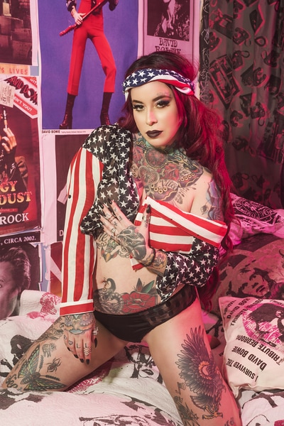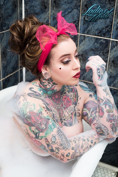 I have always been a big part of the hardcore scene whether it was chasing my favourite bands or slinging merch. I respect and really look up to a lot of the other girls and am very proud to join the sisterhood. Movies: Nightmare on Elm Street, Fear, Helter Skelter, Mean Girls, etc. Television: American Horror Story. Food & Drink: Pizza and Fireball. Obsessions & Addictions: Red lipstick, leather and lace, the ocean and shopping. |