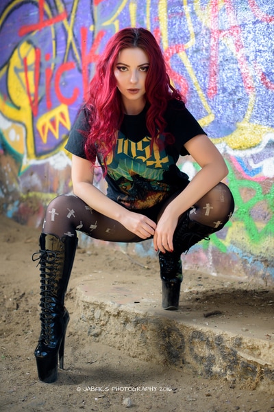 I grew up watching VH1 and That Metal Show. At the age of 13 I formed my first band and six months later I was in the recording studio. Metal has been a huge part of my life and so has music. I was a screamer until I hurt myself permanently doing a show years later. Though I can not scream; I still find ways to use my voice. Along with music, I am a traveling artist doing shows and comic conventions across the US. My main focus is alternative and tattoo'd women along with comic art. I have been modeling since I was 16 and have a great love for what I do. Movies: Fright Night, Joe Dirt, Elvira, French Kiss, and Lost Boys. Television: Psych and That 70's Show. Food & Drink: I can not live without bacon and coffee! Obsessions & Addictions: I have an addiction to buying shoes with a platform of at least 4 inches. I honestly can not buy enough shoes. |